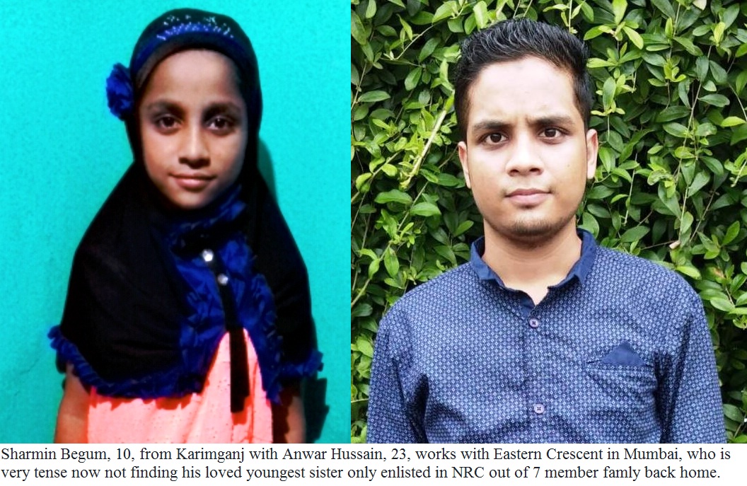 In my office there are five young men from Assam. Three of them are victims of the final NRC draft. Shamim Uddin, 28, from Karimganj, Assam has six brothers and 3 sisters from two mothers. Everyone from his family, including his cousins and uncles, all 20 members of the extended family, are listed in the final draft except he, whereas, he has an Indian passport, issued last year. Dilwar Hussain, 22, from Badarpur LAC, missed the list with his mother and younger sister from the family of six. His father, two brothers – one younger and one elder, however, are enlisted in the NRC draft. Anwar Hussain, 23, again from Badarpur LAC of Karimganj district in Assam has two brothers, two sisters and parents back home. From this family of seven, 6 are in the final draft, including Hussain, but his youngest sister – ten year old Sharmin Begum could not meet the criteria of local NRC authority, thus the young child is left out, which is a major cause of stress for young Hussain, who works with Eastern Crescent, Mumbai.
