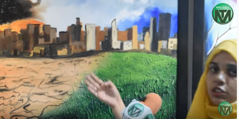 One of her paintings that was put on exhibition last year highlighted the role of parents. It was inspired by a famous Hindi film Baghban. In yet another early work exhibited in 2017 Nargis looks at the continuity of the pattern of life and its similarity from birth to death. Her weaving of everyday lived realities into deep social themes through beautiful colour combinations reflects both her persona and profession which her cousin Neha Tabish finds “appreciable”. So does everyone else.