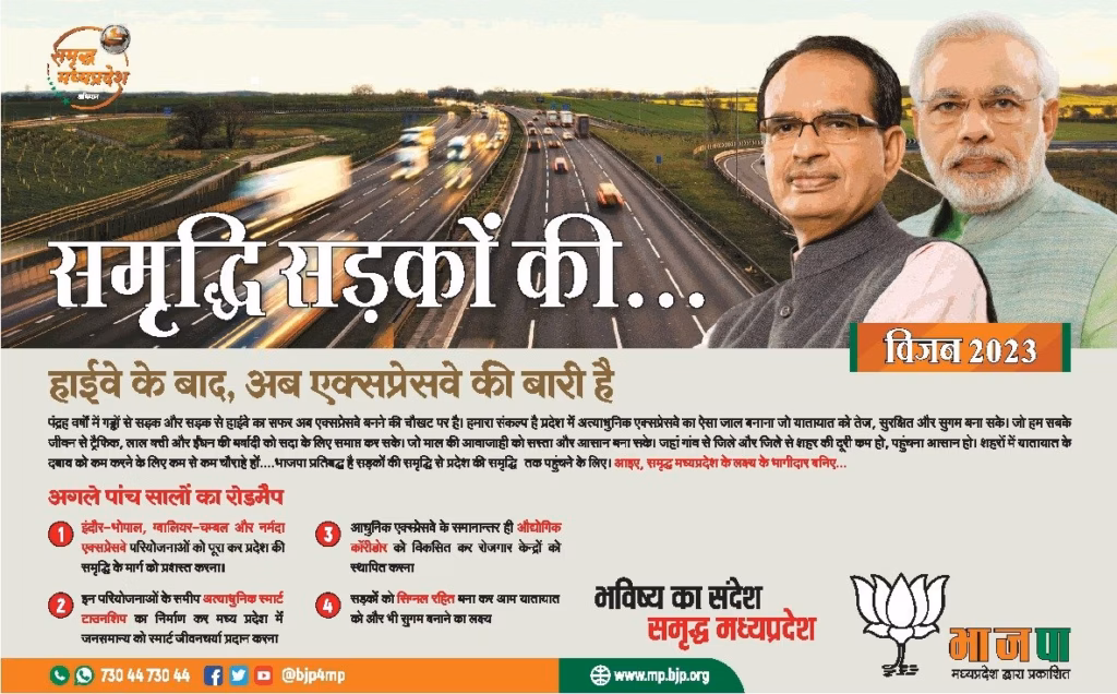 मध्य प्रदेश में हाइवे और एक्सप्रेस वे बनाने के दावों और वादों वाली एक पोस्ट मध्य प्रदेश भाजपा के आधिकारिक