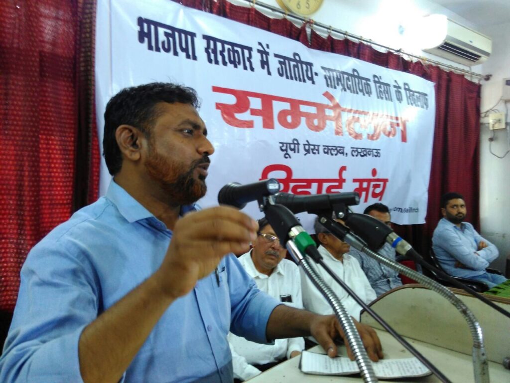 यूपी प्रेस क्लब लखनऊ में रिहाई मंच ने भाजपा के जातीय-साम्प्रदायिक हिंसा के खिलाफ किया सम्मेलन लखनऊ, 7 अप्रैल 2018.