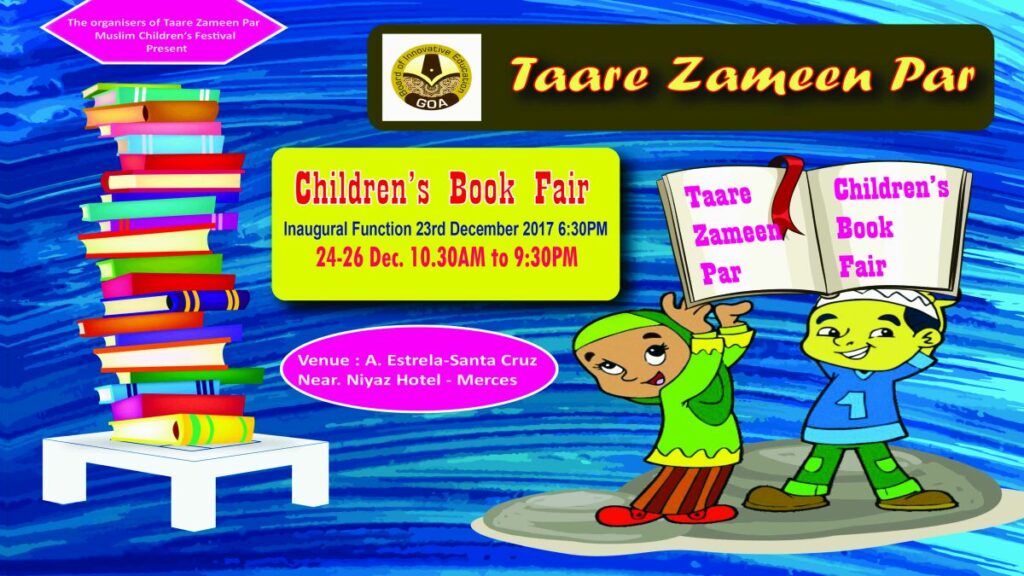 Goa:- With the aim to increase reading habit among students and infuse moral values and develop their personality , Board of Innovative studies is going to conduct 3 day book fair named “TAARE ZAMEEN PAR” from 24 to 26 December 2017 at A.Strela -Santa Cruz,Near Niyaz Hotel ,Merces