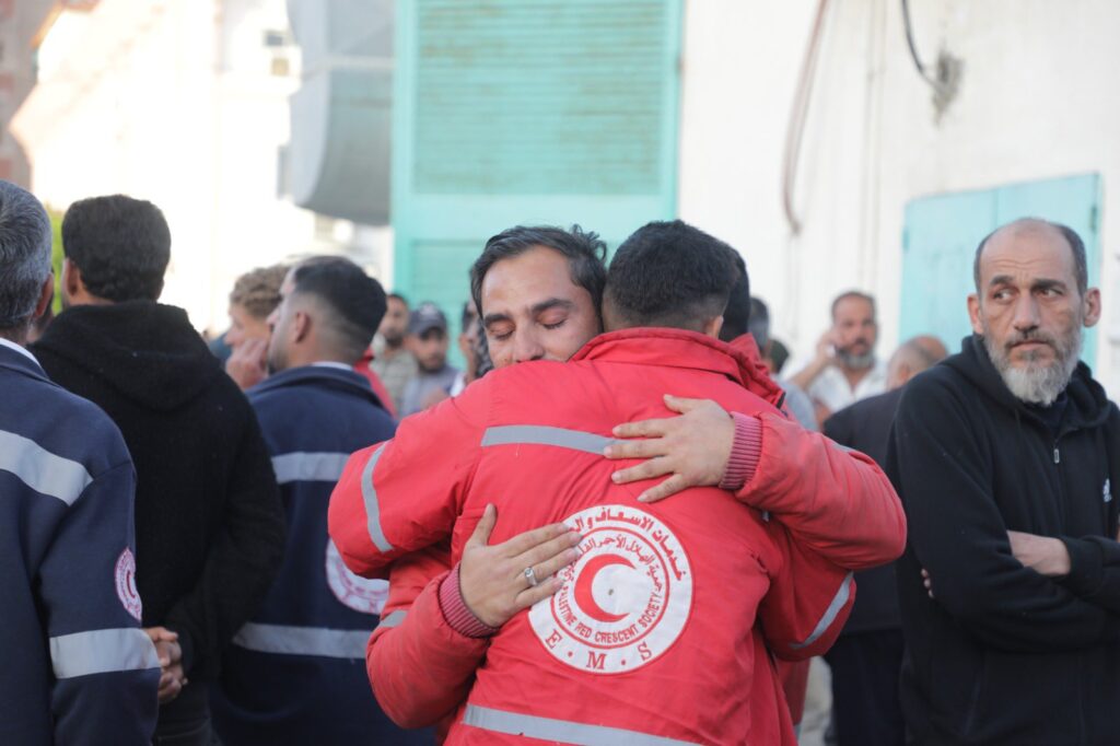 The deaths of the paramedics aid workers sparked widespread international condemnation. Jonathan Whittall, the head of OCHA in the Palestinian territories, said the bodies of the humanitarian workers were “in their uniforms, still wearing gloves” when they were discovered in a mass gray. The UN High Commissioner for Human Rights, Volker Turk, said the attack raised concerns about possible “war crimes”, calling for an independent, prompt and thorough investigation into the apparently systematic killings.