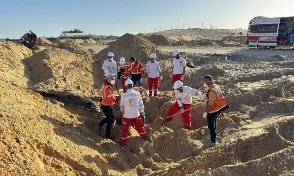 For five days, the UN and Red Crescent were denied access to search for the missing rescue workers. When granted entry, they found 15 rescuers buried in a mass grave. The incident highlights allegations of deliberate attacks on rescue workers, with evidence suggesting Israeli forces buried the bodies in an apparent effort to conceal the circumstances. The Palestinian Red Crescent Society’s vice president, Marwan Jilani, said the phone with the footage was found in the pocket of one of its slain staffers. The Palestinian ambassador to the United Nations distributed the video to the U.N. Security Council.
