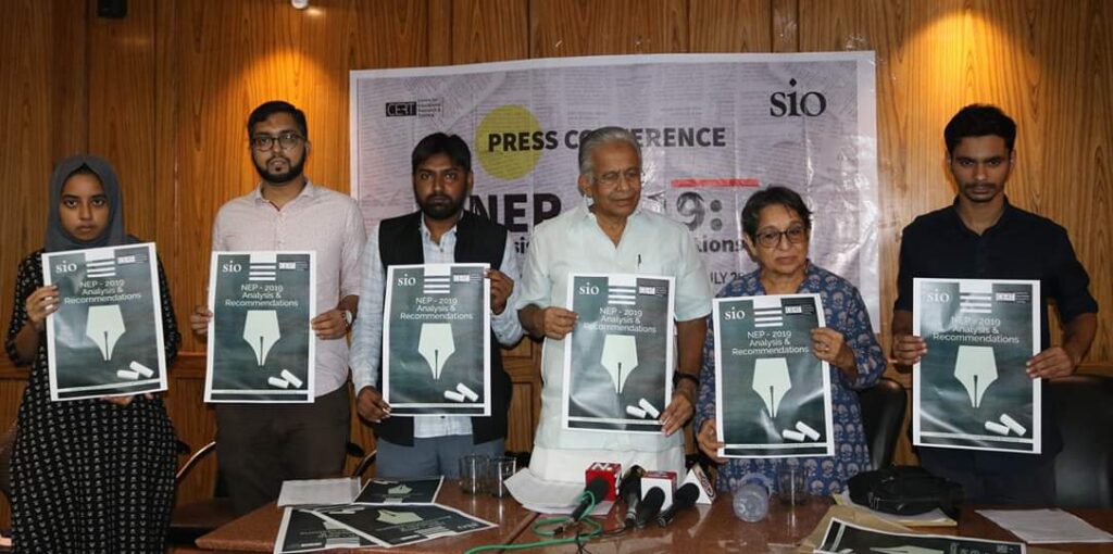 New Delhi: The Indian education system is plagued with a number of issues, be it concerning accessibility, quality, equity, lack of humanity and values, discrimination, hate content, etc. Today, we are in need of an education system that would be erected on constitutional ethos and ensure that accessibility, quality and equity is ensured for all, along with the necessary improvement in curriculum and pedagogy that would ensure India‟s true progress in every way. We need an educational system that would engender critical thinking and research to improve human life and educational campuses that would be interactive spaces for productive critical discourses, discussions and dissent. The draft NEP – 2019 is rife with contradictions and exclusions. It breaks Constitutional structures and values, promotes commercialisation and politicizes educational system by centralising all aspects of it. In this regard a report, “NEP – 2019: Analysis & Recommendations” has been prepared in collaboration with the Students Islamic Organisation of India (SIO) and the Centre for Educational Research & Training (CERT) has been prepared and released analysing the draft NEP and makes recommendations to fix the issues with it.
