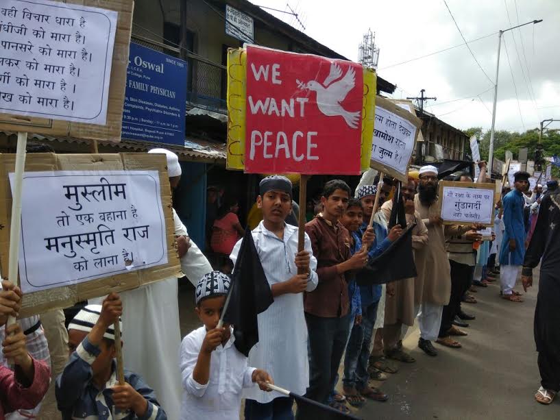 Protest against mob lynching continues in Maharashtra ,after Mumbai ,Aurangabad, Latur,Nanded ,Nasik, Beed now Hundreds of Punekars came on streets for the second time On Friday at Bopodi area to demand atrocity law to protect Muslims and  immediate arrest of  killer cow vigilantes under mcoca law.