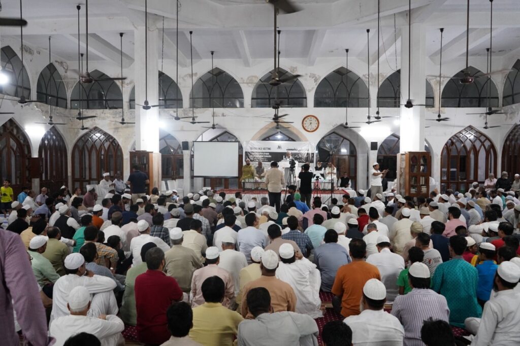 The Secretary of All India Shia Council, Maulana Agha Jalal Haider Naqvi said that “I have received many suggestions from the late Maulana regarding the problems of the country.” Indian National League President, Prof. Muhammad Sulaiman said that “Maulana Umari met his children with great compassion and love and did not panic even in the most adverse situations.” The President of Welfare Party of India, Dr. Syed Qasim Rasool Ilyas said that “his death is a great tragedy for the Ummah. He was most accessible and anybody could meet him without any intervention. He used to present reasoned and clear words in the Muslim Personal Law Board.” Dr. Syed Safi Athar, the son of late Maulana Umari, said that “Maulana’s whole life was jihad, his habits and his method of reform was compassionate for the members of his family. He used to be gentle when he advised us about something.” Sohail Anjam, from the Voice of America, presented a brief outline of Maulana’s life in poetic form. Qasim Syed, Editor Roznama Khabrein, said that “Maulana played an important role in removing the religious differences between the Muslim Ummah.” The Secretary of the Department of Islamic Society, Jamaat-e-Islami Hind, Dr. Razi-ul-Islam Nadvi started the meeting by saying, “I personally feel the pain of Maulana’s death. His presence was like a shadow of comfort for me.”