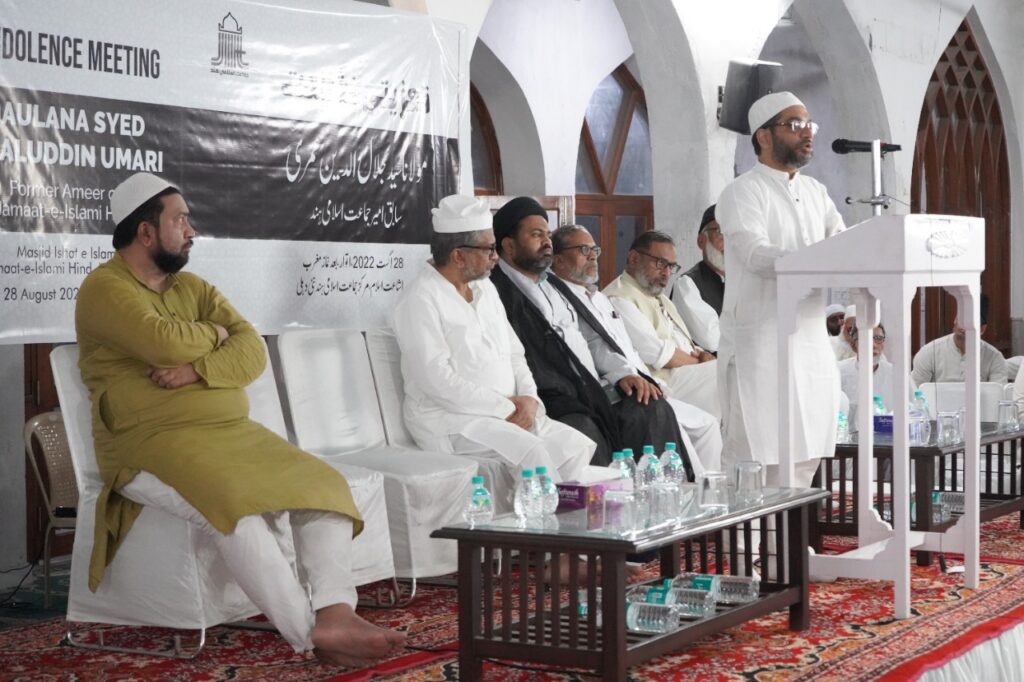 New Delhi: A condolence meeting was held at the Masjid Ishat-e-Islam, in the premises of the headquarters of Jamaat-e-Islami Hind yesterday evening. Various Islamic scholars (Ulema) and intellectuals paid glowing tributes to the former President of Jamaat-e-Islami Hind.