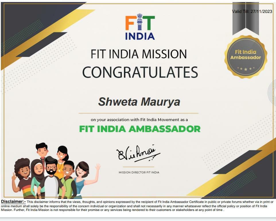 Shweta Maurya is honored to be chosen as Fit India Ambassador, looking forward to serving my country on a larger scale. She is extremely proud to be associated with Fit India Movement- A flagship program launched by honorable Prime Minister Shri Narendra Modi. Shweta Maurya is the best example of fitness and good health. She proves the statement true that age is just a number and you can stay fit at any age. Shweta Maurya was awarded the International Fitness Award 2022 for her astounding fitness level and dedication to being fit all the time. In India, people encourage fitness and health like anything. Hence, awareness of fitness and health will always offer a long life to all humans. Physical activity can strengthen your bones and muscles, help you maintain a healthy weight, increase your ability to carry out daily tasks and improve your cognitive health. Adults who spend less time sitting and engage in any level of moderate-to-vigorous exercise reap some health benefits. Shweta Maurya is the most dedicated human who never believes in giving up and always look forward to moving ahead with healthy psychological and physiological health.