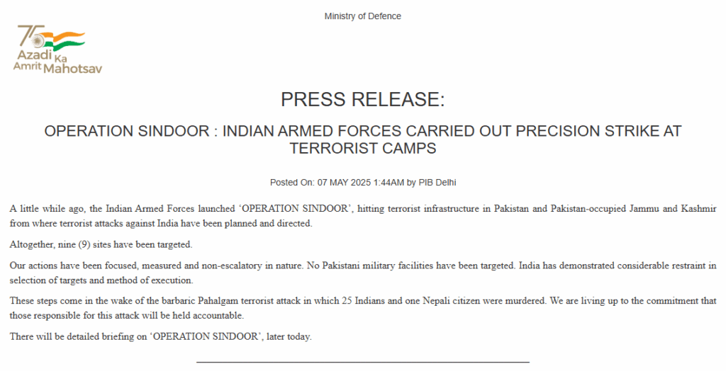 India earlier stated: “Our actions have been focused, measured and non-escalatory in nature. No Pakistani military facilities have been targeted.”