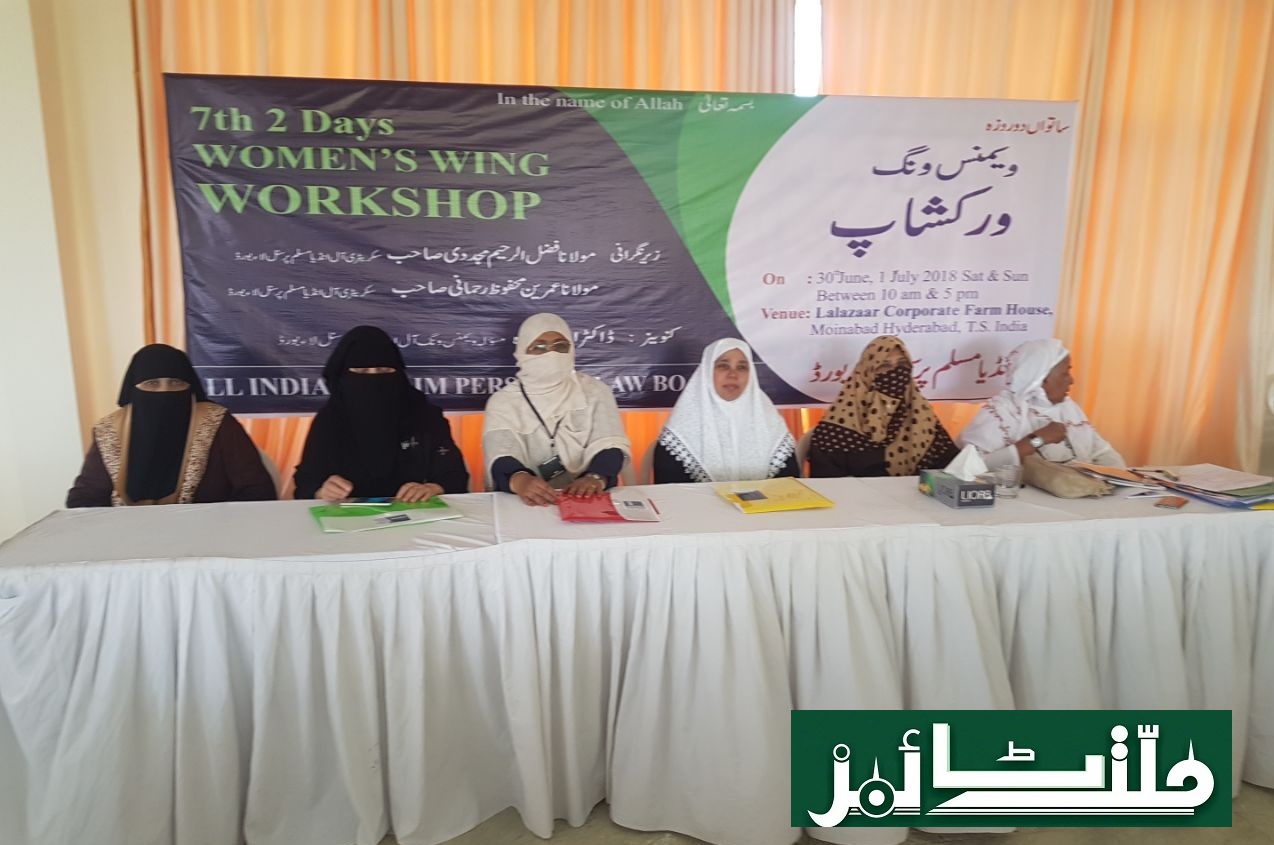 Women’s Wing All India Muslim Personal Law Board organized a 2 day workshop on 30th June & 1st July 2018 Saturday & Sunday at Moinabad, HYDERABAD. Workshop was attended by more than 50 delegates from 28 different places. There were 4 Sessions on Important Topics of Importance of Personal Laws for the Society, Muslim Personal Law Board Aims Objectives, Methodology, Scope of Work in women, Problems in implementation of Personal law, Social Evils & Social Challenges, Media Issues, Need to clarify misunderstanding, Legal challenges facing Muslim Personal law, Importance of Unity in Community, Need of Promoting activities in Youth, Social Reform & Social Services Counseling Centers & All India Muslim Women Helpline Toll free Call Centre 18001028426.